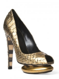 In addition, Georgina Goodman's "Dusty" shoe that uses a pebble platform which seems to quickly become a trademark for Goodman and the statuesque 'Dawson' peep-toe pumps with stripes and parabolic pebble platform are indeed rather unusual, yet they are sophisticated and majestic.